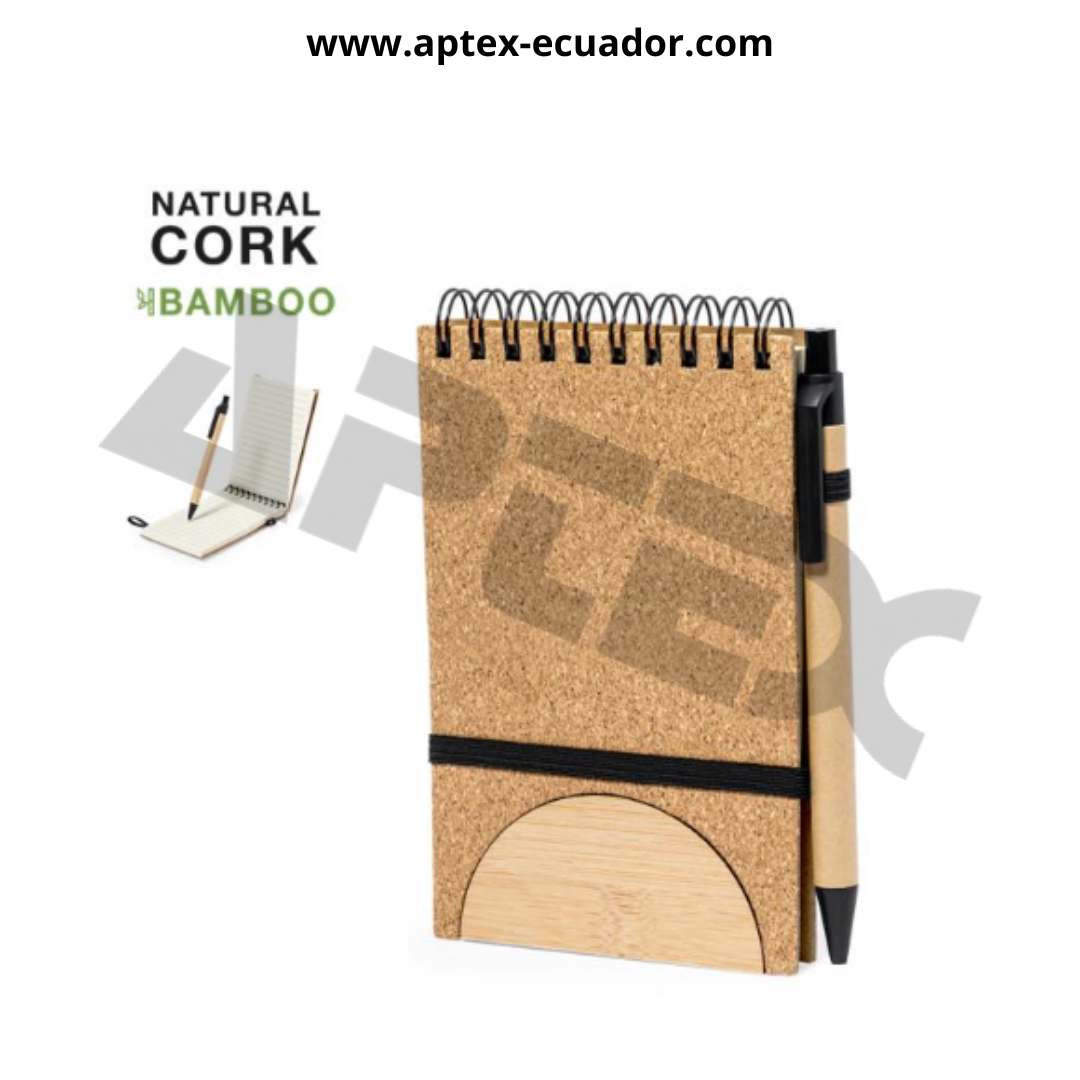 libreta ecológica incluye bolígrafo y función soporte celular.