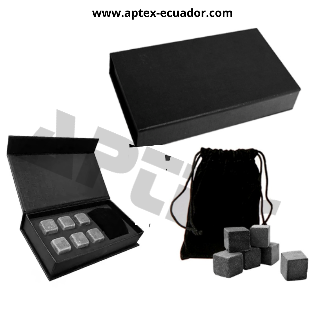 Set de hielos piedra volcánica con funda de terciopelo apto para impresión