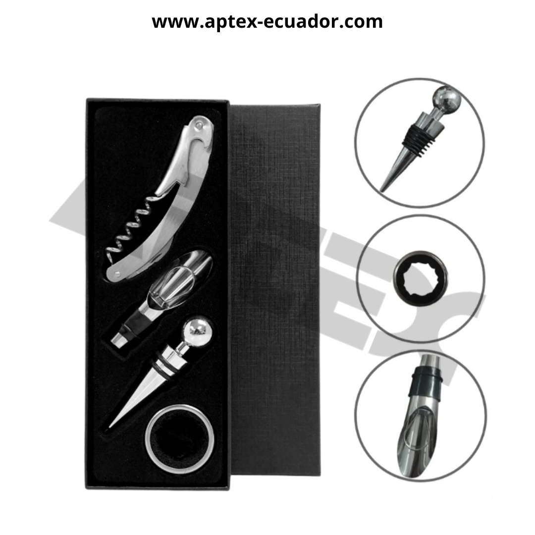 Set de herramientas para vino de acero inoxidable 4 piezas apto para impresión