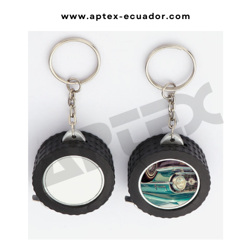 Llavero plástico en forma de llanta con flexómetro incluido apto para impresión