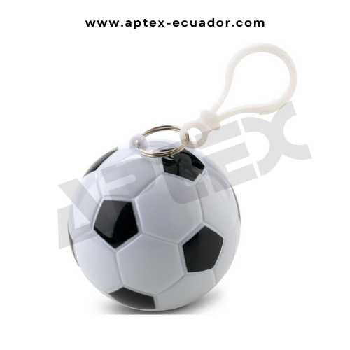 Llavero plástico en forma de balón de fútbol, incluye poncho de agua aptos para impresión